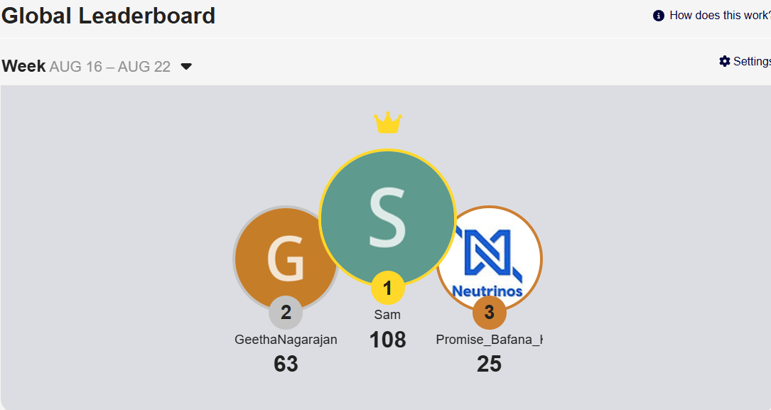 Making a strong leap this week, GeethaNagarajan secures the silver spot with a solid score—closing the gap and eyeing the top!