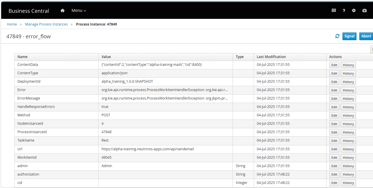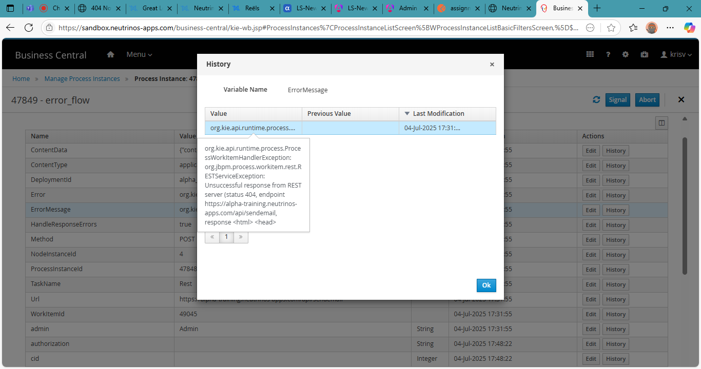 We are trying to submit/reject approvals from the alpha workbench and see the flow execution in Business central. But the case decisions are leading to error workflow. Below are the error details:
